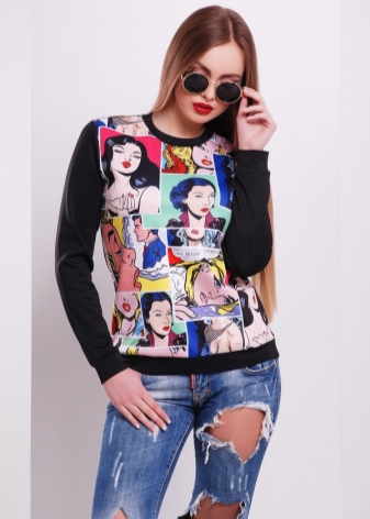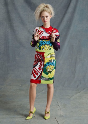The style of pop art in clothes is a direction that becomes a classic. Clothing with crazy designs and flashy colors, actively flickering in commercials, has become a trend among the younger generation. The bright madness created by the designers is enjoyed by shocking celebrities, for example, Katy Perry, Riana, Miley Cyrus.