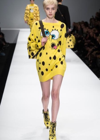 - Consider your age. Things with SpongeBob eyes will delight teens. Cartoon heroes on t-shirts, sports shoes and caps, on trousers and skirts will give the guys a sea of vivid emotions. Those who are over 30 can also amuse themselves. Only in the image should there be one extravagant little thing. For example, a plain dress will complement a clutch with a portrait of celebrity. For ladies over 50, a portrait of the president on a T-shirt is suitable, but you should not think about bunnies and cute doggies.