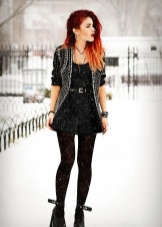 Of the advantages of women's clothing in the style of rock, it is worth highlighting her sexuality. This is especially true of Gothic items or outfits from the category of hard rock.Narrow dresses with corsets, leather leggings and pants, short shorts and jackets are able to emphasize the advantages of a female figure.