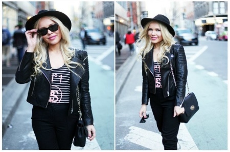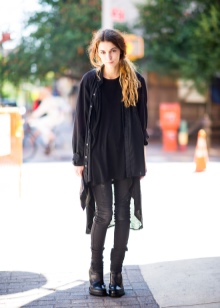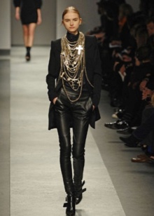 It is recommended to give preference to such things as: leather leggings, dark sweaters and T-shirts, leather jackets and jackets.