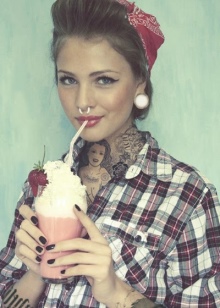 One of the first free trends in clothing is contrasting rockabilly. It is not characterized by such tough details as spikes or rivets. But in it courage is traced which not everyone can afford.