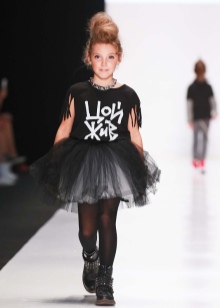 For little princesses, a huge variety of skirts are released today that will emphasize the daring style of the image. This applies to lush multilayer packs in which the upper part is painted black and the lower part pink. Such a thing can be attributed to glam rock.