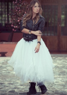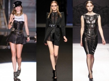 To create a bold rebellious image today, it is worth stocking up with such fashionable things as: leather dresses, skirts, shorts, white t-shirts and various accessories.