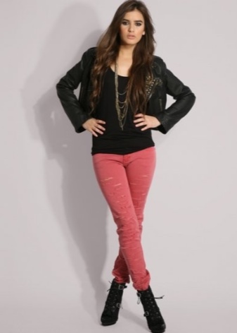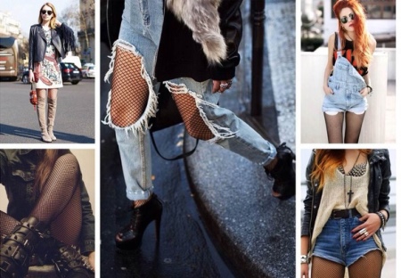 Ripped jeans and mesh tights are still in fashion. You should be careful with these things. They are not suitable for every occasion. Many celebrities wear such elements for everyday walks or for performing on stage.