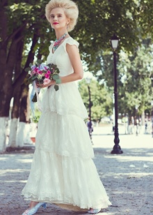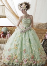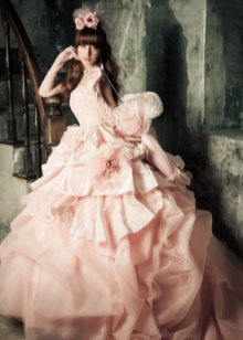 An ideal option in this style would be a wedding dress. It will definitely look like a special, unique and attractive, and will allow its owner to feel like a real queen. In this case, it is not necessary to choose an outfit of a traditional "wedding" color. It can be lilac or light blue, the color of azure or sea sand, beige.