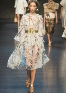 In shirt dresses with a high collar, the “signature” distortion of the proportions of the figure occurs due to the use of skirts on the frame with pockets and voluminous folds. In models with a neckline, the entire image is aligned with the help of puffy skirts with numerous frills.