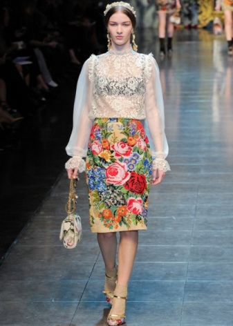 Embroideries made with gold metal thread trimmed with stones, beads, rhinestones, appliques in the form of geometric shapes are very popular. The most stylish is considered to be the rocaille pattern, which is a golden curl (the name rococo comes from the word shell, shell, which determined this choice of designers). Numerous lace on clothes is still in fashion.