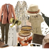 Of the shades of green, it is preferable to choose olive and swamp colors, dark green and protective, as well as the color of dry grass. Of the basic colors, various shades of beige are suitable, as well as gray and its earthy shade. The most vivid colors in the images of African travelers can be terracotta and mustard.