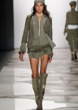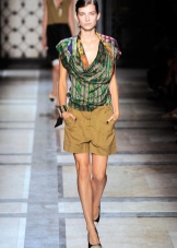 Provocative short shorts in this direction will become a real decoration for a girl who has everything in order with her figure. For the rest, no less attractive elongated shorts just above the knee are suitable. In addition to the top in safari style, you can choose a T-shirt or T-shirt of a free style, as well as complement the image with bright accessories.
