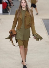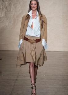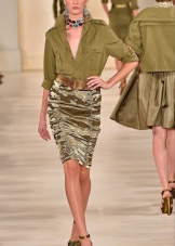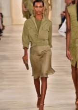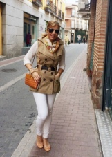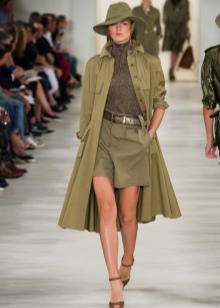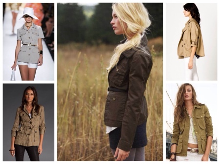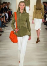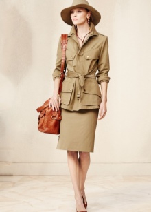 A great addition to a safari jacket is a narrow pencil skirt in the same color scheme. Such an image is quite suitable for going to work and will add variety to the boring grayness of workdays. You can choose narrow trousers of a shortened style that will look great on tall girls.