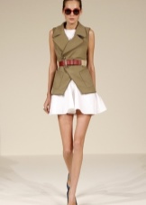An extended jacket with a belt is very popular among thin-waist girls. This wardrobe item is tailored to the type of shirt, has patch pockets on the chest and is often decorated with shoulder straps. With the help of such a jacket, you can visually make the shoulders narrower and the waist thinner. Jacket sleeves can have different lengths, which allows you to wear it in cold and warm weather.