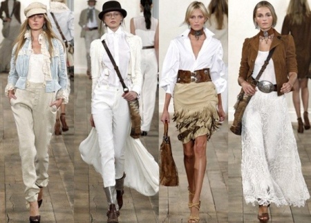 - For sewing clothes in this direction, only natural fabrics are used. For hot days, it is important to use linen or cotton; suede and leather elements of clothing are also acceptable.