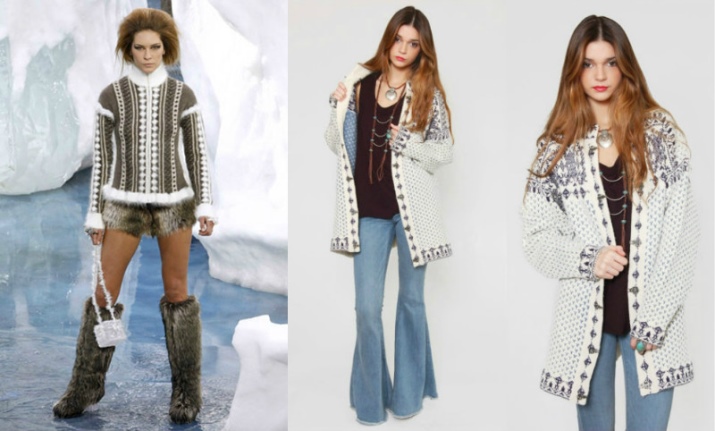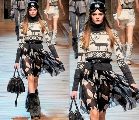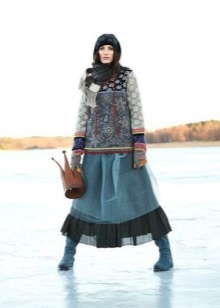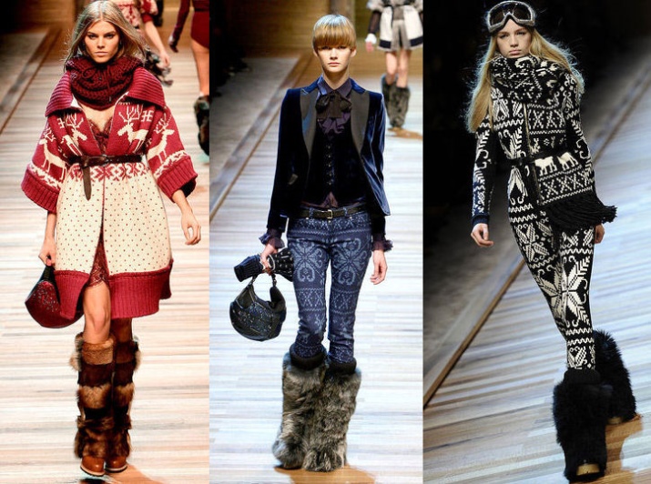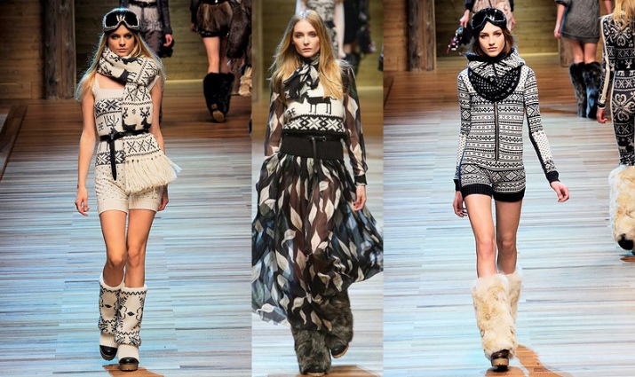 If we talk about women's clothing in this style, then it is easy to recognize it, as it will certainly be decorated with ornaments and patterns. They can be found on any part of the clothing - mittens, jumpers, mittens, golfs, skirts and so on. Also, clothes where leather and fur are used will be very popular.. For example, leather fasteners and fur trim.