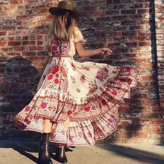 Another interesting image is a long sundress made of cotton or linen with a traditional ornament that can be worn with open sandals.