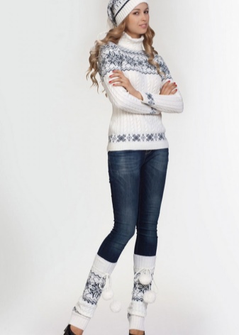 Very often, girls wear cozy sweaters that have high collars and patterns. They are wonderfully combined with jeans.