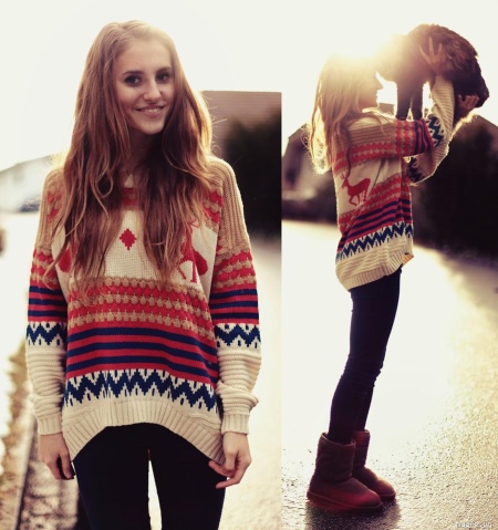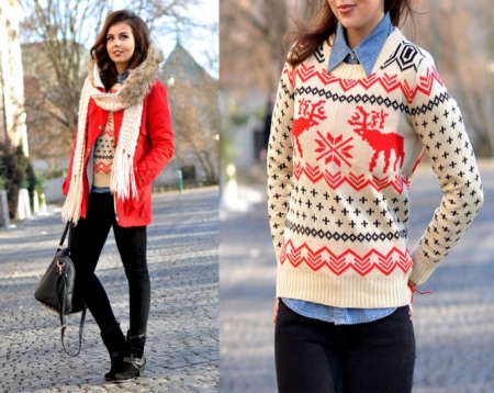 A distinctive feature of Scandinavian-style clothing is the presence of ethnic patterns. Of course, not every thing has it, but still you can often find deer or Christmas trees on clothes. Most often they are placed on golfs, hats, mittens, sweaters and so on.Moreover, the most important is that they are relevant for both children and women, and for men.
