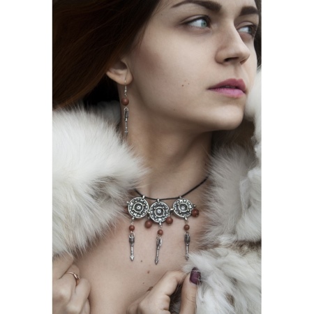With simple Scandinavian clothes, wooden or leather products will also perfectly combine. For example, leather pendants in the form of a talisman with tassels or large beads made of wood are the perfect solution for clothes with ornaments.