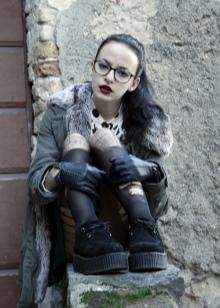 The main attributes of this style are slightly baggy things with scuffs, plaid shirts, short bell-shaped skirts, which are often diluted with such Gothic elements as leather jackets, stripes and spikes, fishnet tights. Of the accessories, the variety of chains with uncomplicated pendants, metal bracelets and piercings are extremely popular.