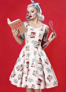 The use of prints such as polka dots, as well as embroidery of flowers on a dark or pale background, is very popular. Often there are things decorated with ruffles or lace.