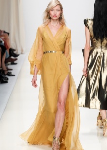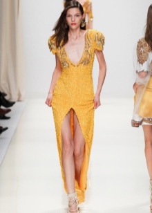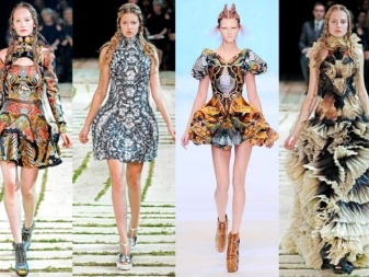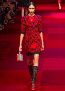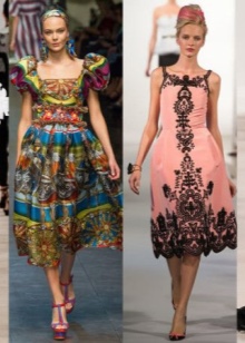 Currently, this direction is very popular among women under 35 years old. Most often it is expressed in dresses of a fitted cut, whose constant companions are femininity in combination with a complex way of decorating. A more youthful option is the presence of translucent guipure inserts, and for mature ladies - a complex skirt.