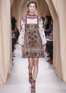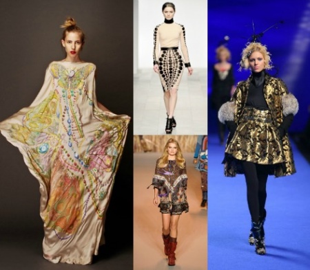 - Ethnic motifs have become a favorite way of decorating many famous designers. The most common of them is the drawing on the fabric of drawings or embroidery in the form of flowers, complex patterns of the northern peoples. Especially often seen in jewelry.