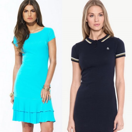 Creating images of this style requires that its owner is thoughtful in detail and at the same time light. Extremely popular elements of sporty chic are straight-cut dresses resembling elongated T-shirts or T-shirts. As a rule, they are sewn from light knitwear and often have inscriptions or drawings as decoration. Polo dresses are especially relevant.