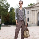 In any image, you need to draw attention to one bright detail. If these are catchy print trousers, it is better to combine them with a classic blouse, add a couple of accessories, flat shoes and a bag in a sports style.