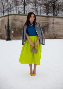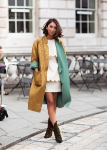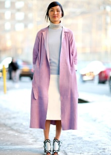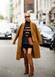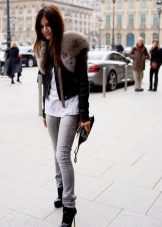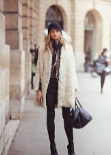Street style for the cold season implies layering. A coat or a fur coat can be worn over a shirt and vest. The color of outerwear can be any.