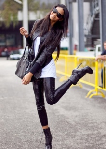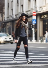 London street style has two varieties: the classic direction and hooligan notes. Fans of traditional moods prefer tight trousers, jeans and leggings, which are often combined with t-shirts, strict jackets and cardigans. Those who are closer to rock culture and punk, choose jackets, black jeans and accessories that belong to these cultures for sets.