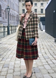 A hit for girls can be created by combining a double-breasted blazer from someone else’s shoulder, a classic skirt, a knitted T-shirt and high-heeled shoes.