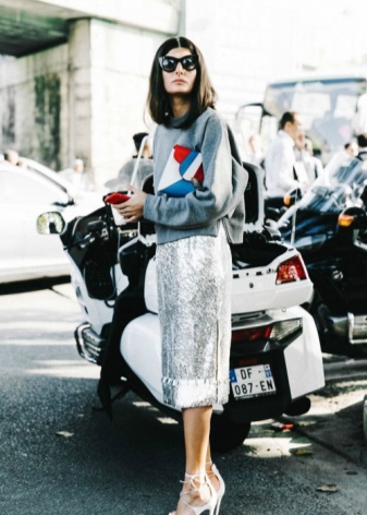 If there is a thing with a shiny texture in the set, so as not to oversaturated the daily bow, you need to dilute the shine with clothes of neutral monophonic shades.