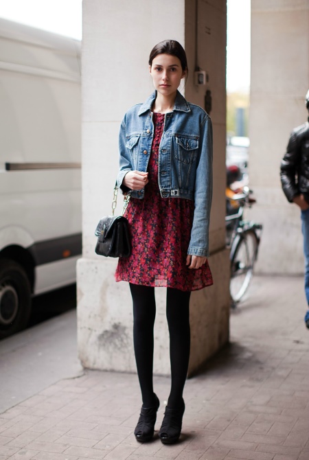 Spring bow often combines romantic and brutal things. It can be an elegant dress or sundress, which is combined with a denim jacket. You can complement the outfit with laconic boats or platform sandals.
