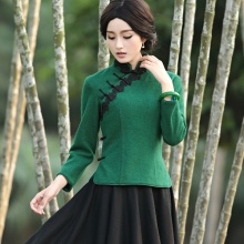 - Chinese style is simple and elegant. Qipao blouses, sweaters and mandarin jackets, which are often sewn with stand-up collars, are harmoniously combined with tight trousers and long skirts.