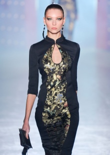 - Sheath dress with a stand-up collar is still in fashion. It looks strict and elegant, as it reflects Chinese minimalism. Such an outfit deserves respect. It is comfortable, beautiful and fits any female figure. Slenders and buns, young girls and ladies at a respectable age must definitely get a sheath dress. In it you can go to work and attend cultural events. A rich imagination will allow women to add stylish accessories and appropriate shoes to the dress.