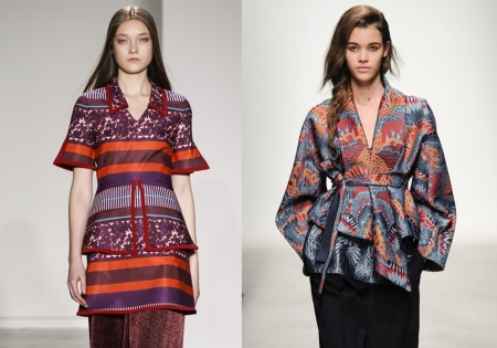 The style includes Japanese motifs. The deep philosophy of the unity of man with the outside world is reflected in clothing. The outfits are bright, concise and restrained. Dresses have a straight cut. On trousers, sweaters and coats that imitate kimono, there are side cuts. Fabrics of natural shades with different patterns, for example, plant patterns.
