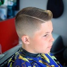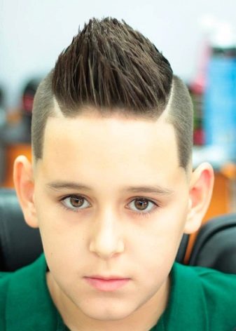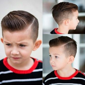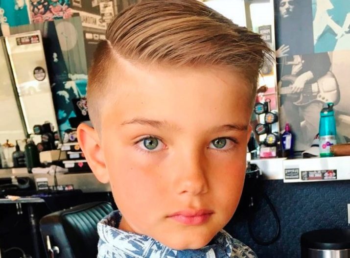 For boys 6-7 years old, a hairstyle with a side parting from thick strands of different lengths is perfect. At the same time, both sides are either shaved with a machine, or simply sheared as short as possible.
