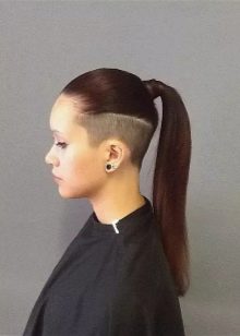 The trend of last summer continues to be one of the most popular options even now, and not only among adolescents, but also among older women. Such a haircut does not require special care, but at the same time it refreshes the look and makes you much younger and more progressive. A big plus of this hairstyle for girls with long hair is the ability to hide a shaved temple if necessary.