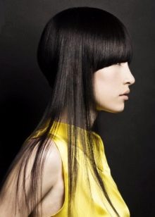 - long bangs can reach not only the eyebrows, but also the cheeks and chin.