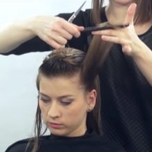 - Each separated strand of the parietal zone should be placed perpendicular to the head, and only then cut to the required length. During the haircut, do not forget that you should keep a reference to the control curl allocated at the temple.