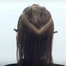 - Next, you need to make a classic vertical parting throughout the head, and divide all the curls into four zones: two zones at the temples, one on the crown of the head and one on the back of the head.