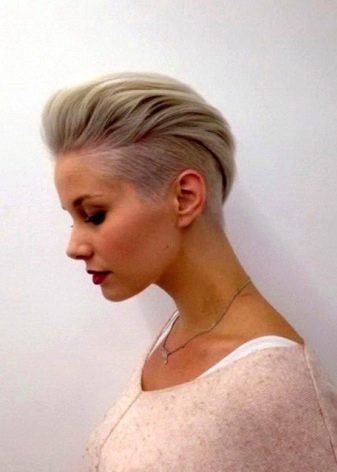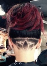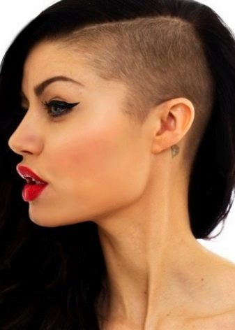 - With the transition to the occipital part of the head. There is where to brave especially brave ladies. You can shave your hair from one side and go to the back of the head, or from two. You can generally restrict only the occipital part. Such a hairstyle looks even better when shaving patterns, characters, logos.