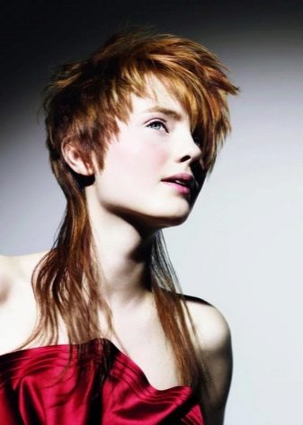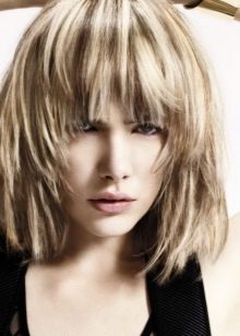 It is carried out by cutting the strands “steps” in the technique of stacking them one on top of the other.In the crown of the head, the curls are shorter, the strands on the sides are asymmetric, with sharp transitions. At the tips, thinning is performed. Due to the layering, this haircut is recommended for owners of not too lush hair with thin, thin hair.