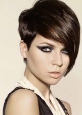 Asymmetric bean visually refreshes the face. The asymmetry of the haircut is especially noticeable in the front area. In the classic version, the hairstyle is performed with bangs. Often, it is replaced by a long strand of hair starting from the back of the head. Rear hair length is the shortest.