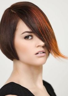 To make the bangs look spectacular, the length of the haircut should be lower than the temples. This haircut looks especially good with an emphasis on the juicy color of the strands or an addition in the form of highlighting.This haircut suits blondes, brunettes and redheads. An ideal option for blondes is an asymmetry of an elongated type without a bang.