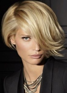 Hairstyle emphasizes the neck, gives visual proportionality to the face. However, it is demanding for styling, otherwise it may seem like a wig. For example, you can use light whey or milk for this. The haircut itself is distinguished by a diagonal length line. On the one hand, the hair is shorter than on the other.