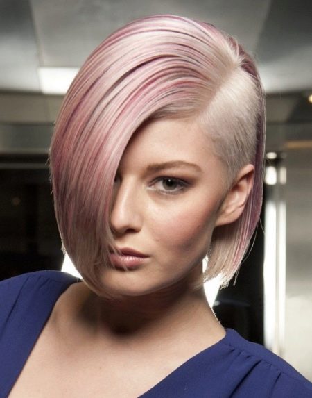 The hair at the back can be shorter than the hair at the front: a kind of ultra-hair from the crown will look unusual. Moreover, it can be profiled or thick. Extension options can have either a smooth diagonal cut line or a sharp one. The second option looks pretty unusual. So that the haircut does not lose its effect, a clear silhouette should be traced.