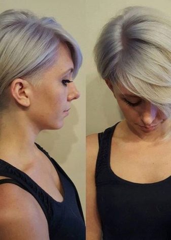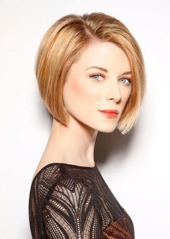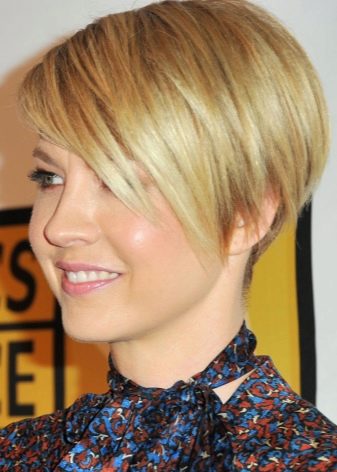 - The girls endowed by nature an elongated oval of the face, will be more impressed with a haircut with side strands. The length of this option is minimal - the curls reach the edge of the ears or go down to the chin. The latter option makes the face visually a little wider. Those who want to gradually shorten the length are left with the upper strands - they will give the face proportionality.