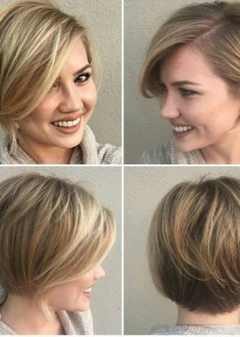 - Chubby You can try an asymmetric elongated “bean” that can visually stretch your face. The emphasis should be placed on the back of the head, removing the splendor of the side curls to the maximum.