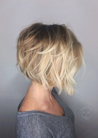 In this model, there is a light bang, and on the back of the head, hair is shorter. This option is good for chubby women. If desired, the bangs can be oblique, adding sophistication to the image.