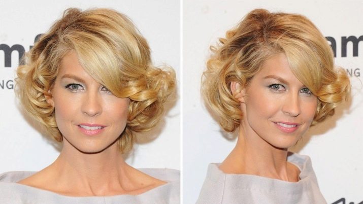 - High styling. To make an elegant "tall" bean, you need to use curlers. First you need to apply foam on wet locks. Curly dry hair is laid back in a high composition. A few curls remain in front.